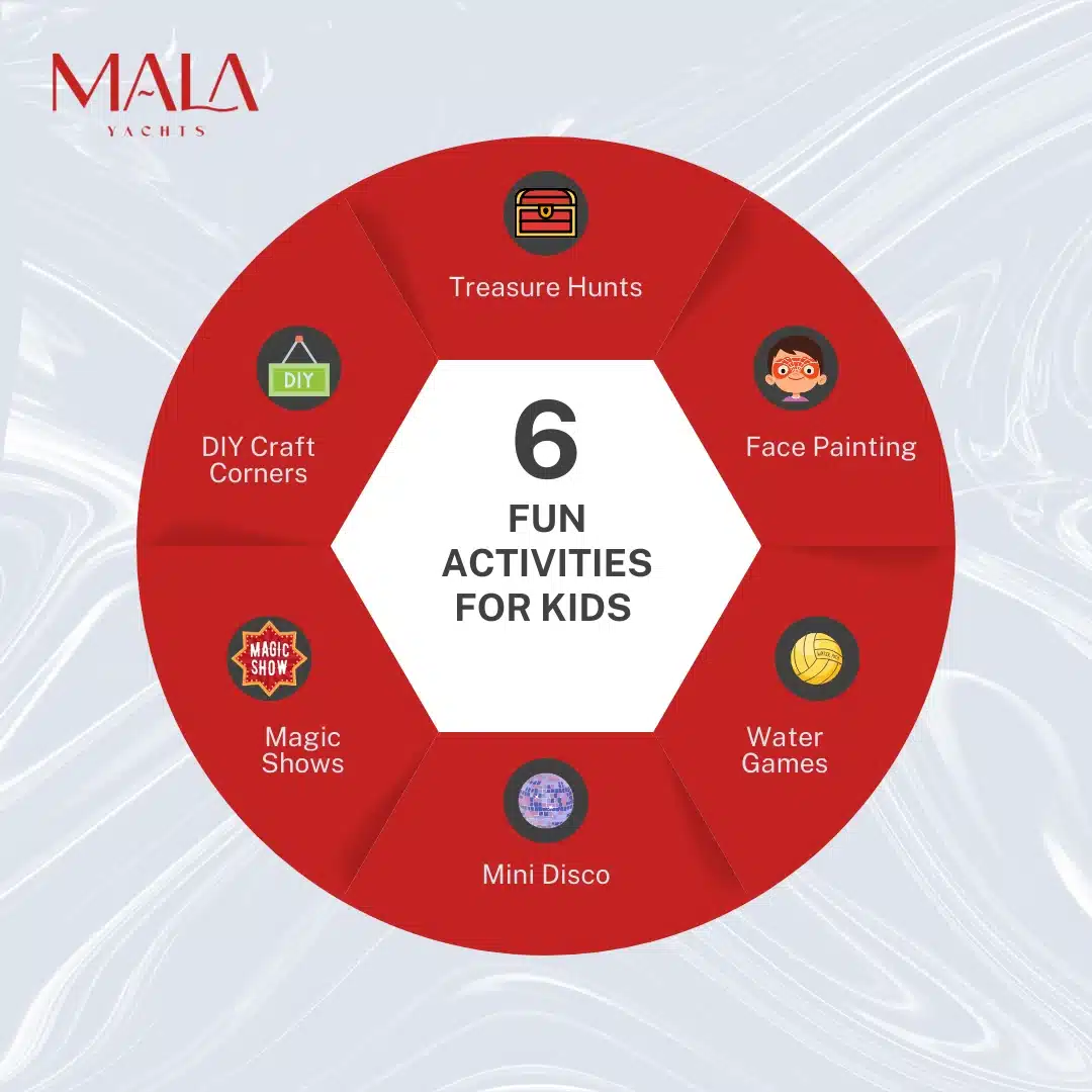 A birthday bash on a yacht is not about gathering, but kids can enjoy a variety of exciting activities, including;