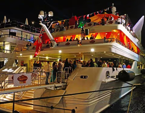 To make your F1 yacht charter experience more enjoyable, we offer a range of entertainment options onboard our yachts. We have live cooking stations where you can watch our professional chefs prepare delicious meals for you. We also have musicians onboard to provide you with live music entertainment.